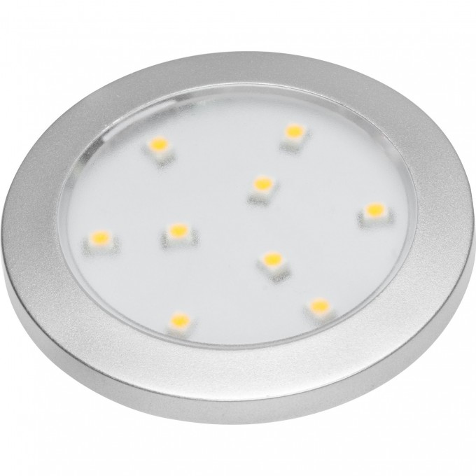 Точечный накладной светодиодный светильник Isla 12V,0,8W,9 диодов, 200см провод с mini AMP, тепл. свет, алюминий - интерьерный осветительный прибор, который легко устанавливается на навесные шкафы и полки. Монтаж осуществляется при помощи саморезов или клейкой ленты. Обладает малым энергопотреблением и длительным сроком службы.