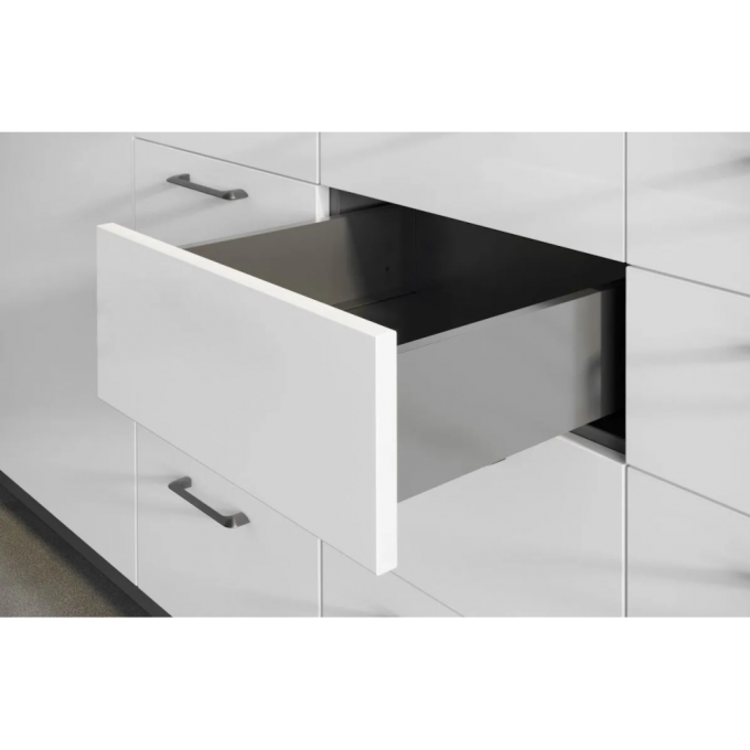 AXIS PRO push to open L-300 мм, средний H-116 мм, антрацит - мебельная система выдвижения, представляющая собой набор из направляющих и боковых стенок, для сборки выкатного ящика. Система предназначена для использования в кухонных гарнитурах, а также в шкафах и тумбах различного назначения, где конструктивно предусмотрены выдвижные ящики.